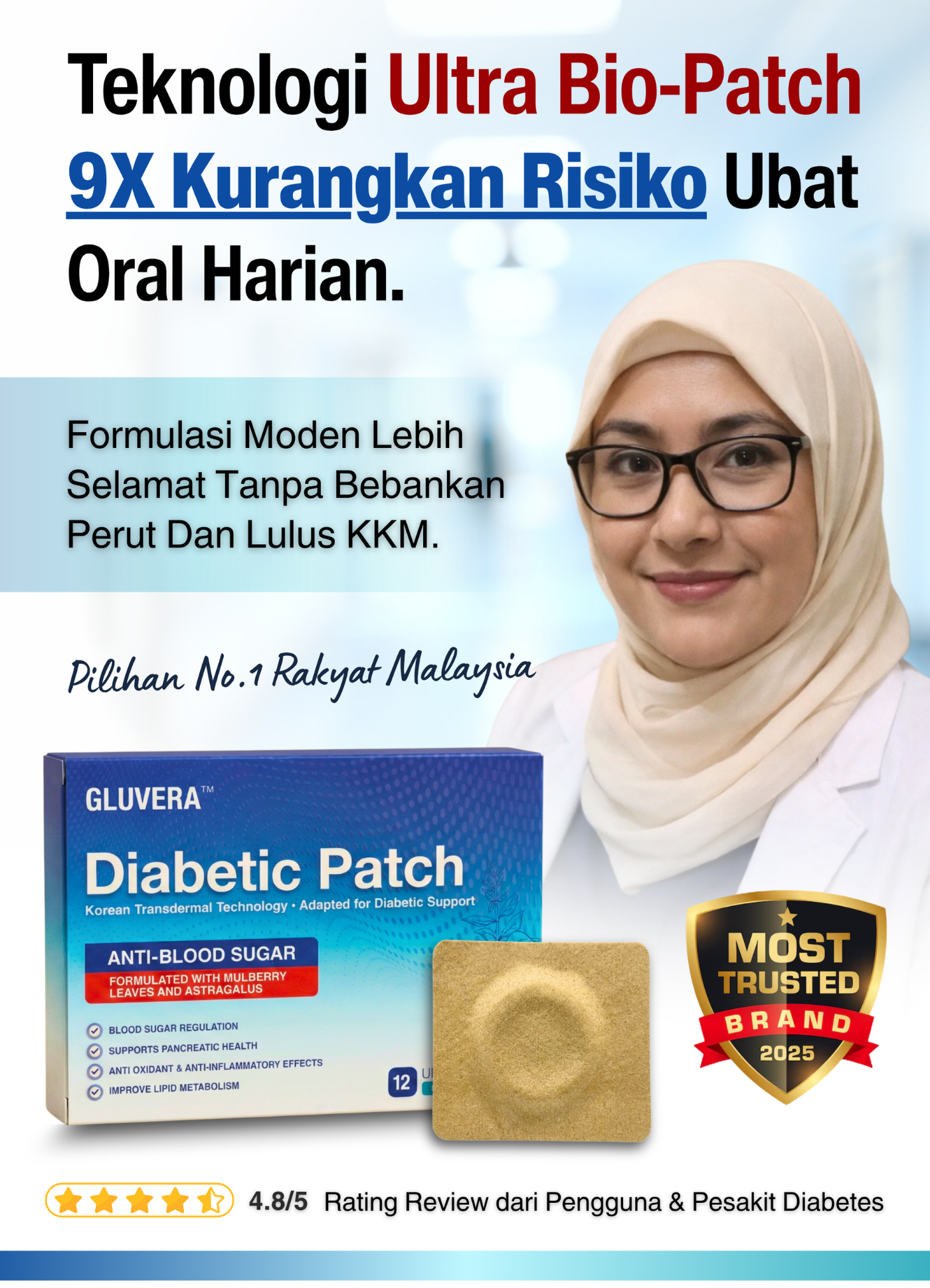 GLUVERA™ BIOPATCH : Teknologi moden tanpa insulin, bebas ubat kimia dengan sokongann sains & kajian pakar rawat diabetes kronik